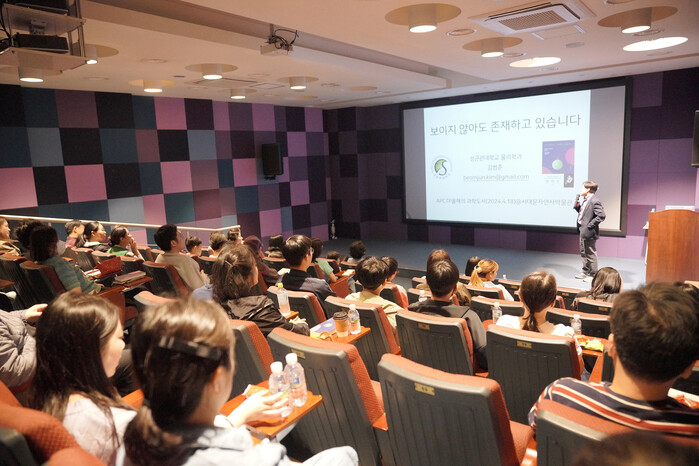 | ▲ 올해 4월 18일 서대문자연사박물관 시청각실에서 열린 올해의 과학도서 저자강연 <보이지 않아도 존재하고 있습니다> (사진=서대문구청 제공) |