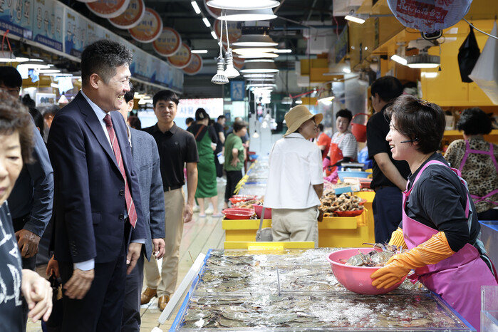 이날 김정헌 구청장은 공무원들과 함께 인천종합어시장, 신흥시장, 신포국제시장을 연이어 찾아가 농수산물과 지역 특산품을 직접 구매하고, 상인·소비자들과 소통하며 애로사항을 청취하는 시간을 가졌다.