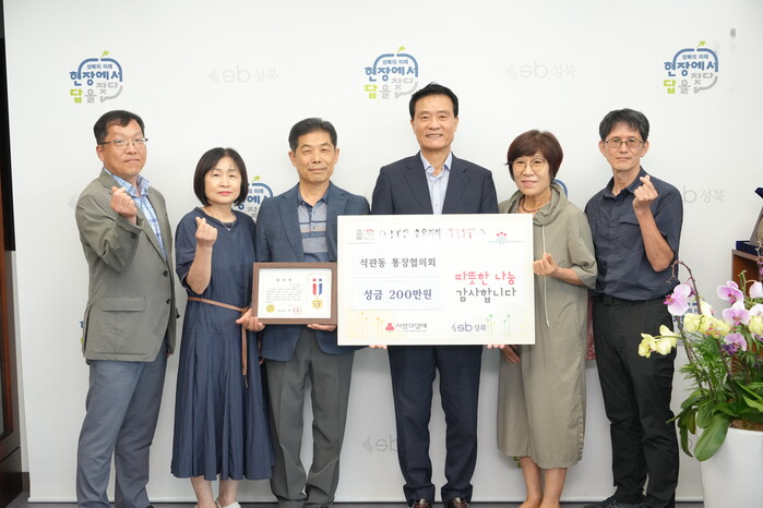 [시민일보 = 홍덕표 기자] 서울 성북구(구청장 이승로)는 16일 석관동 통장협의회로부터 집중호우 피해 복구 성금 200만원을 전달받았다.