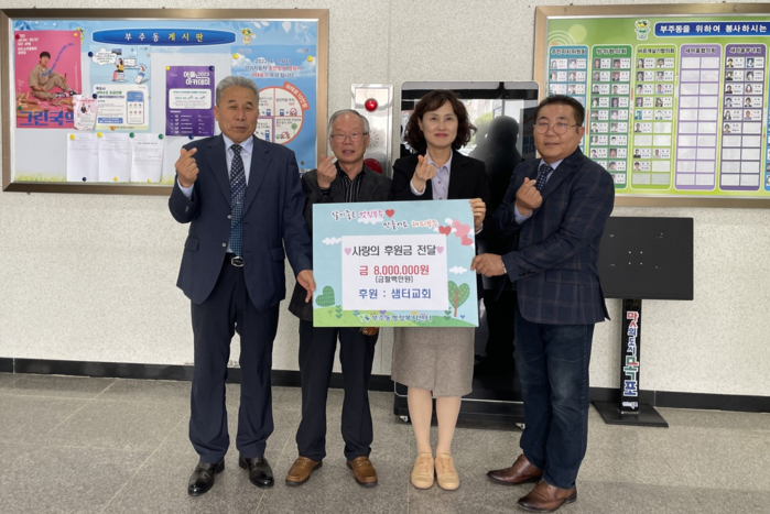 부주동 소재의 샘터교회는 교인들이 모은 헌금 800만원을 지역사회 내 어려운 이웃을 위해 써 달라며 부주동행정복지센터에 기탁했다.