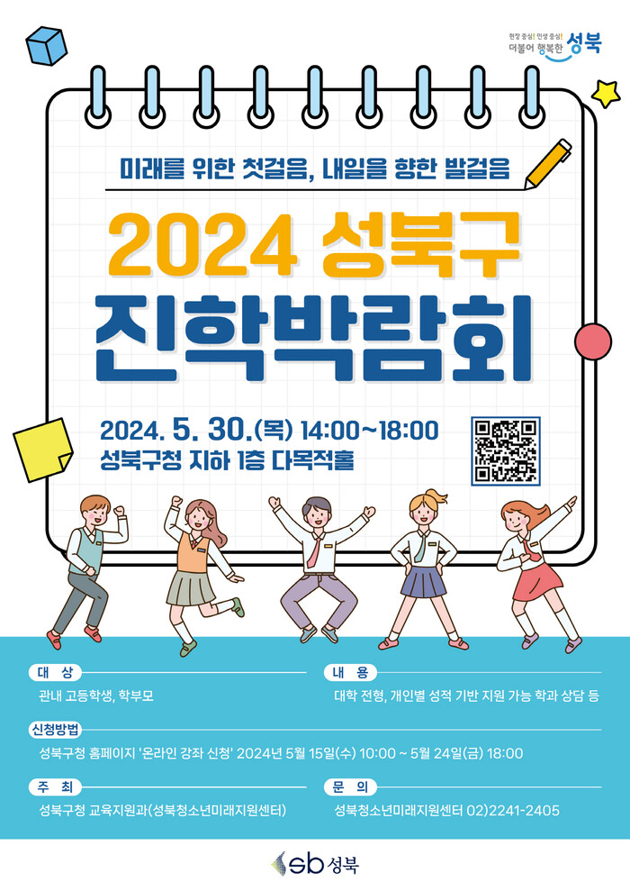 [시민일보 = 변은선 기자] 서울 성북구(구청장 이승로)가 오는 30일 오후 2~6시 성북구청 지하1층 다목적홀에서 고등학생 및 학부모 대상으로 '2024 성북구 진학박람회'를 개최한다.