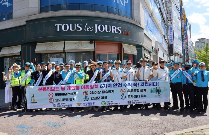 이날 캠페인은 개인형이동장치 교통사고 예방을 위해 마련됐으며, 광주자치경찰위원회와 광주경찰청, 녹색어머니회, 모범운전자회 등이 참여했다.
