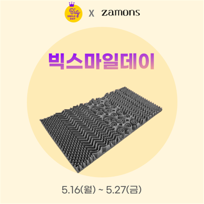 ‘이베이 빅스마일데이’ 행사는 이베이에서 진행하는 연중 최대 행사로 오는 27일(금)까지 지마켓 및 옥션을 통해서 진행되며, ‘자몬스 토퍼 매트리스’를 쿠폰 할인 혜택을 통해 싱글 침대형의 경우 6만원대 가격으로 만나볼 수 있다.