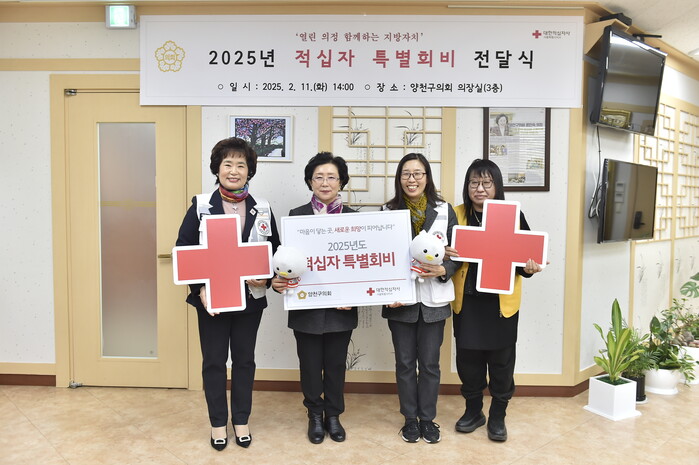 [시민일보 = 박소진 기자] 서울 양천구의회(의장 윤인숙)가 최근 의장실에서 대한적십자사 서울지사에 2025년 적십자 특별회비를 전달하며 나눔의 뜻을 전했다고 밝혔다.