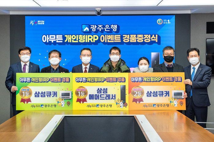 [시민일보 = 이대우 기자] 광주은행(은행장 송종욱)은 본점에서 개인형IRP(개인형퇴직연금) 가입고객을 대상으로 펼친 ‘아무튼 개인형IRP, 든든한 연금준비’ 이벤트의 당첨자에 대한 경품 증정식을 가졌다고 밝혔다.