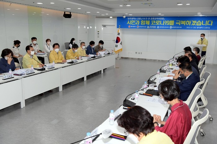 이날 회의에는 박유환 광주시의사회장, 박춘배 광주시약사회장, 김경종 조선대병원장, 최용수 광주기독병원장, 박용욱 빛고을전남대병원장 등 지역 내 방역·의료 관계자 20여 명이 참석했다.