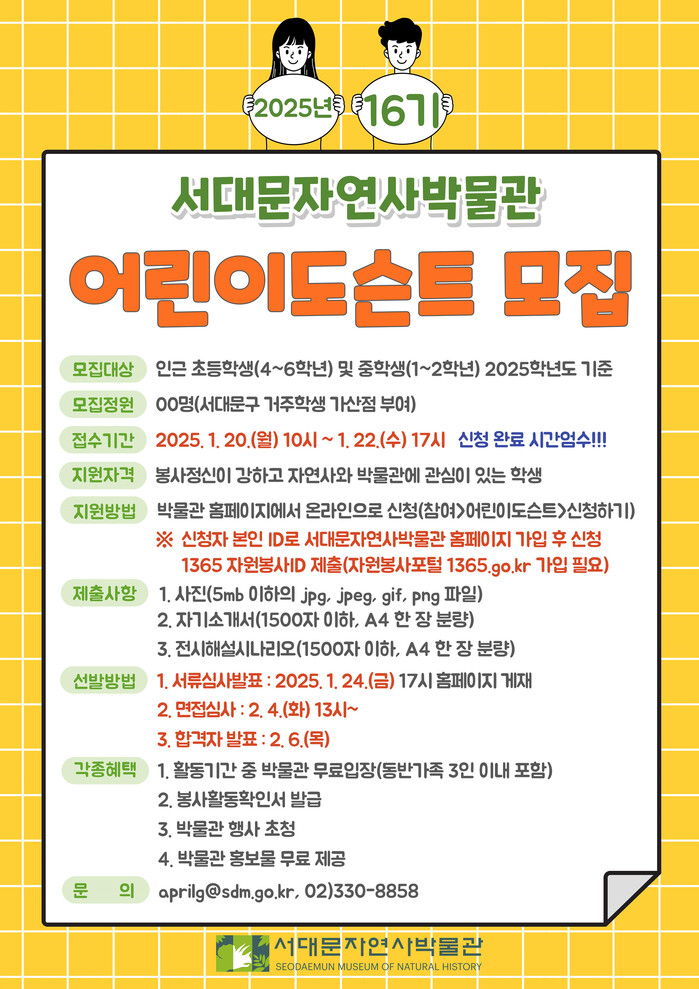 | ▲ 2025년 16기 서대문자연사박물관 어린이도슨트 모집 포스터. |