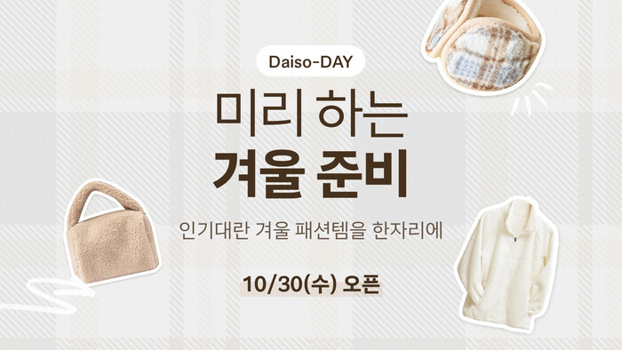 [시민일보 = 여영준 기자] 아성다이소가 운영하는 다이소몰에서 ‘Daiso-DAY 미리하는 겨울준비’ 행사를 진행한다고 30일 밝혔다.