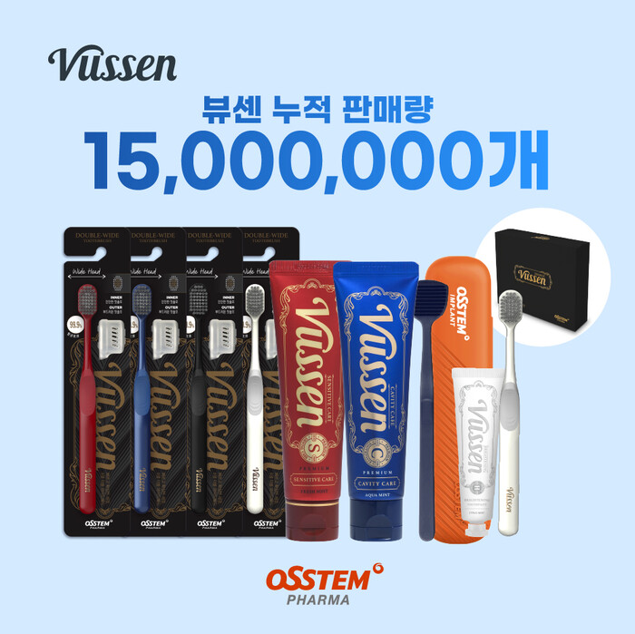 [시민일보 = 여영준 기자] 오스템임플란트 자회사 오스템파마는 자사 프리미엄 브랜드 ‘뷰센(Vussen)’ 기능성 치약의 누적 판매량이 10월 말일 기준 1500만개를 돌파했다고 14일 밝혔다.