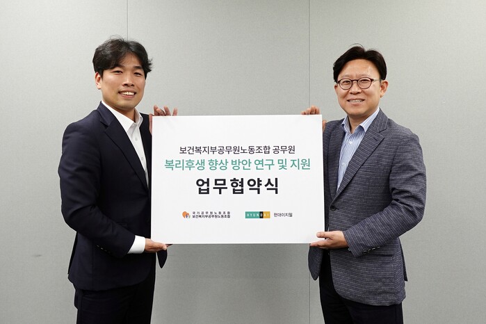 [시민일보 = 여영준 기자] 현대이지웰이 보건복지부공무원노동조합과 공무원 복리후생 향상 방안 연구 및 지원을 위한 업무협약을 체결했다고 1일 밝혔다.