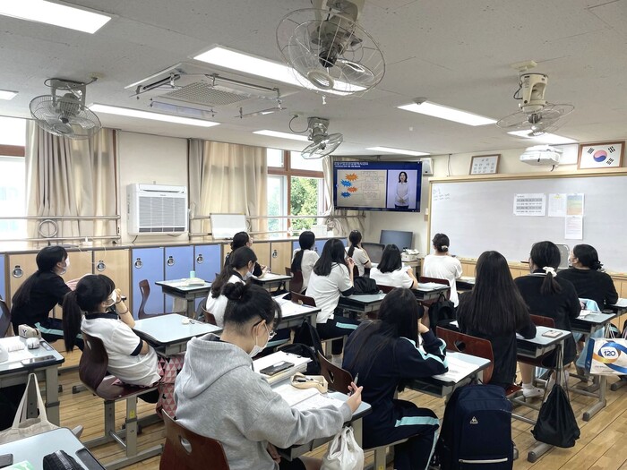 | ▲ 약물 중독의 위험성을 예방하기 위한 교육 진행 모습.(사진=은평구 제공) |
