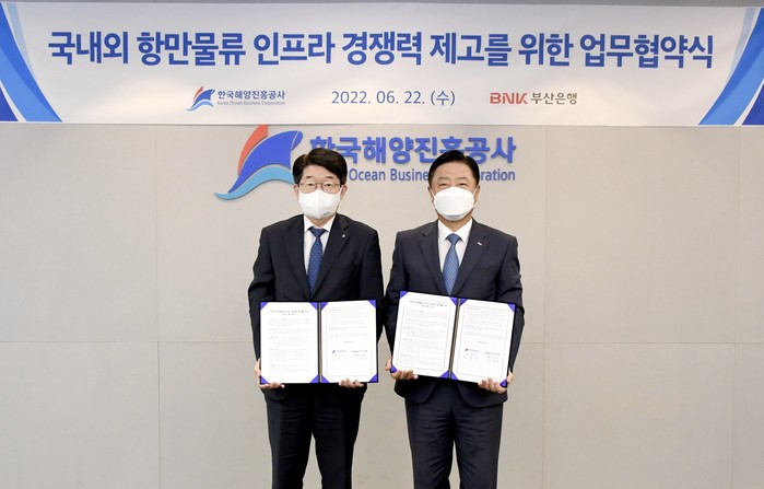 부산은행은 22일 오후, 한국해양진흥공사 본사에서 ‘국내외 항만물류 인프라 경쟁력 제고를 위한 업무협약’을 체결했다고 밝혔다.