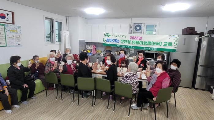 | ▲ 지난 8일 천호3동 경로당에서 열린 찾아가는 EM교육. (사진제공=강동구청) |