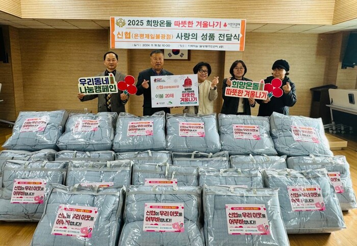 한인석 신협 은평제일불광점 이사장은 “지역사회와 상생하며 따뜻한 정을 나누는 것이 신협의 중요한 가치다”며 “이번 겨울 이불 기부가 소외된 이웃에게 조금이나마 도움이 되길 바란다”고 말했다.