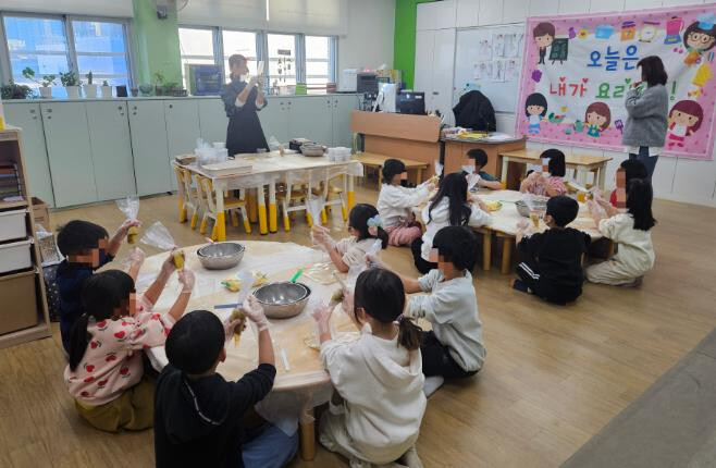 | ▲ 쑥쑥 요리교실 프로그램. (사진=강동구청 제공) |