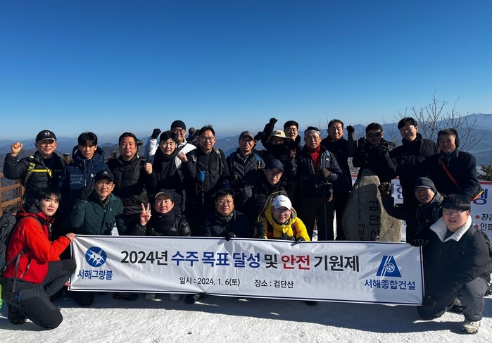 서해종합건설이 지난 1월 6일 경기도 하남시 검단산에서 2024년 수주 목표 달성과 중대재해 제로 달성을 기원하는 산행 행사를 가졌다. 이번 행사에는 박정배 대표이사를 비롯한 임직원들이 참석했다.