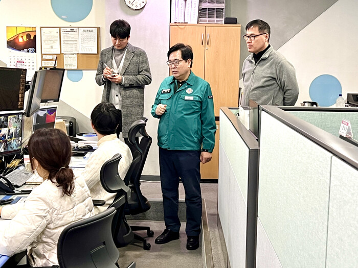 | ▲ 박일하 구청장이 15일 동작구 CCTV 통합관제센터를 방문해 대응 상황을 점검하고 있다. (사진=동작구청 제공) |