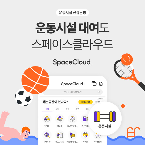 한편, 스페이스클라우드는 운동시설 론칭을 맞아 운동시설 추천공간 기획전, 운동시설 할인쿠폰 증정 이벤트를 진행하고 있다.