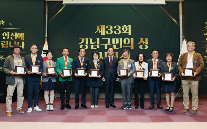 [시민일보 = 이대우 기자] 서울 강남구(구청장 조성명)가 최근 코엑스 컨퍼런스룸에서 제33회 강남구민의 상 시상식을 열고, 지역사회 발전과 주민 복지 증진에 헌신해 온 구민 12명에게 상을 수여했다.