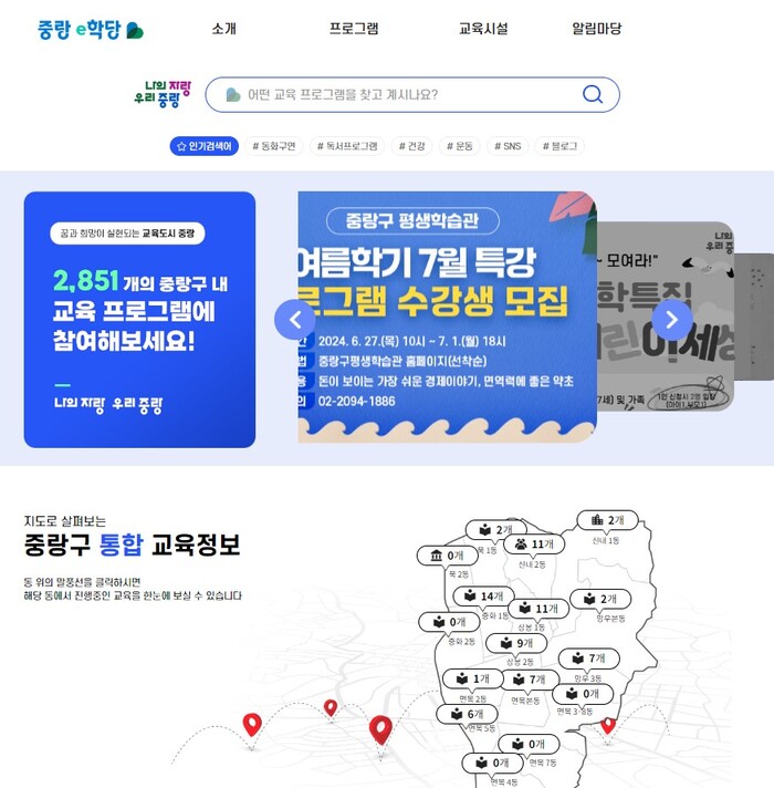 [시민일보 = 여영준 기자] 서울 중랑구(구청장 류경기)가 최근 교육정보 통합제공 웹 '중랑e학당'을 오픈했다.