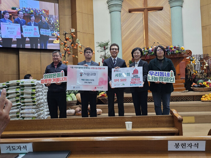 추수경 응암3동장은 “해마다 지역의 복지 발전과 주변 이웃을 위해 모범적으로 나눔 문화 확산에 앞장서는 서문교회에 감사하다”며 “앞으로도 어려운 이웃들을 더욱 세심히 살피며 사각지대 발굴에 힘쓰겠다”고 밝혔다.