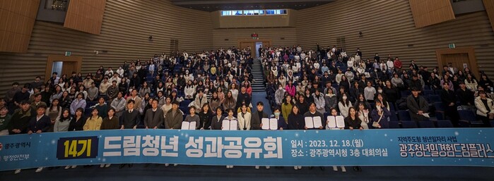 | ▲ 광주광역시, 18일 시청 대회의실에서 ‘광주청년 일경험드림플러스 사업’에 참여한 청년 450여 명과 함께 성과공유회 개최 / 광주광역시 제공 |