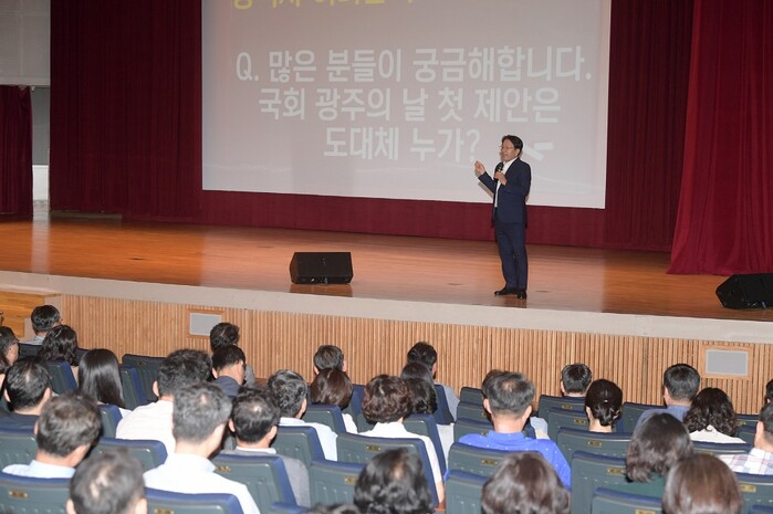강 시장은 이날 ‘국회, 광주의 날’과 국비 확보, 민생토론회 등을 위해 밤낮없이 고생한 공직자들에게 고마움을 전했다.