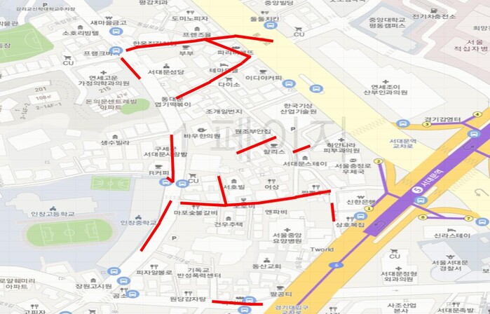 | ▲ 서대문구 통일로9길 7 일대 ‘하수관로 보수·정비 공사’ 위치도 (사진=서대문구청 제공) |