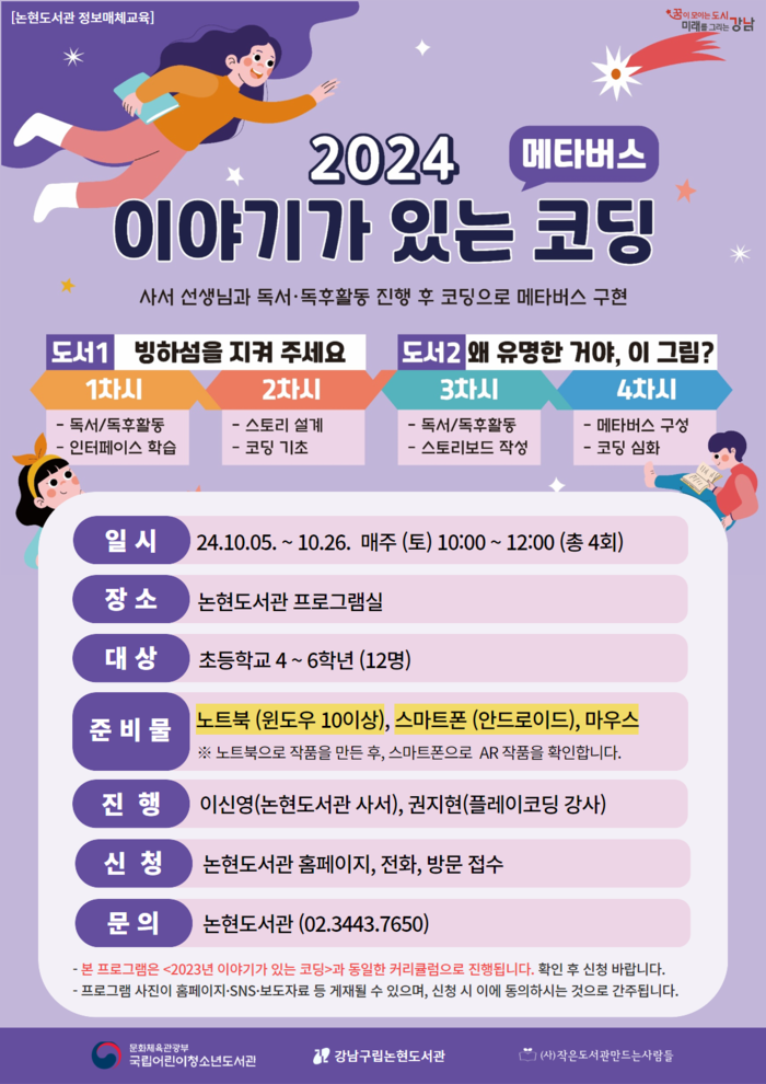 ‘이야기가 있는 코딩’은 독서와 코딩을 결합한 새로운 융합형 코딩교육 프로그램으로, 독서에 대한 어린이의 흥미를 고취하고, 4차 산업혁명 시대에 필요한 컴퓨팅 사고력과 문제해결력을 향상시키기 위해 마련되었다.