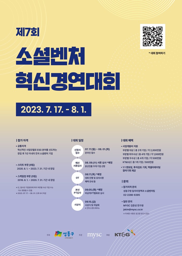 이번 대회는 전국 소재 창업 7년 이내의 소셜벤처 기업이면 참가 신청이 가능하다.