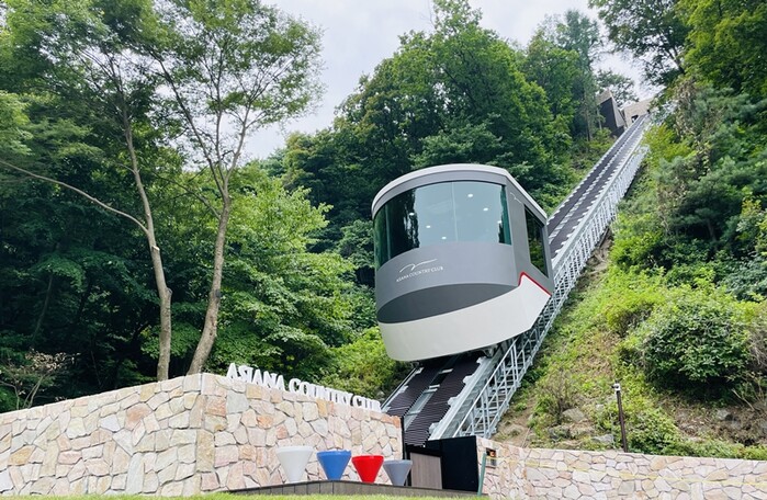 신규 리프트카는 유럽형 디자인의 리프트카로 안전 사양과 이용 편의가 대폭 향상된 점이 특징이다. 4면 닫힘형으로 설계해 안정감을 향상시키고, 냉난방 기기 설치에 따른 편의도 제공한다. 이와 함께 35도의 경사각에서도 탁월한 주행감을 보이며, 동시에 전면 유리 소재로 디자인되어 이동간 코스 전체를 조망하는 개방감을 느낄 수 있도록 설계되었다. 이외에도 리프트카 탑승장에 포토존을 조성해 고객들이 아시아나CC에서만 누릴 수 있는 특별한 경험을 간직할 수 있도록 했다.