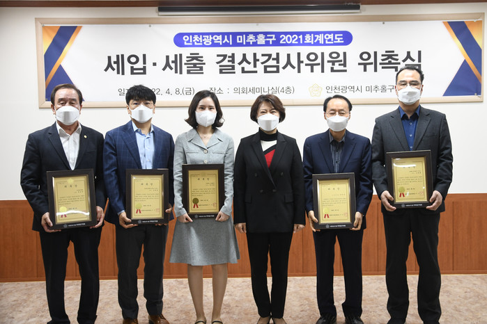 [인천=문찬식 기자] 인천 미추홀구의회가 2021 회계연도 세입·세출 결산검사위원 위촉식을 가졌다.