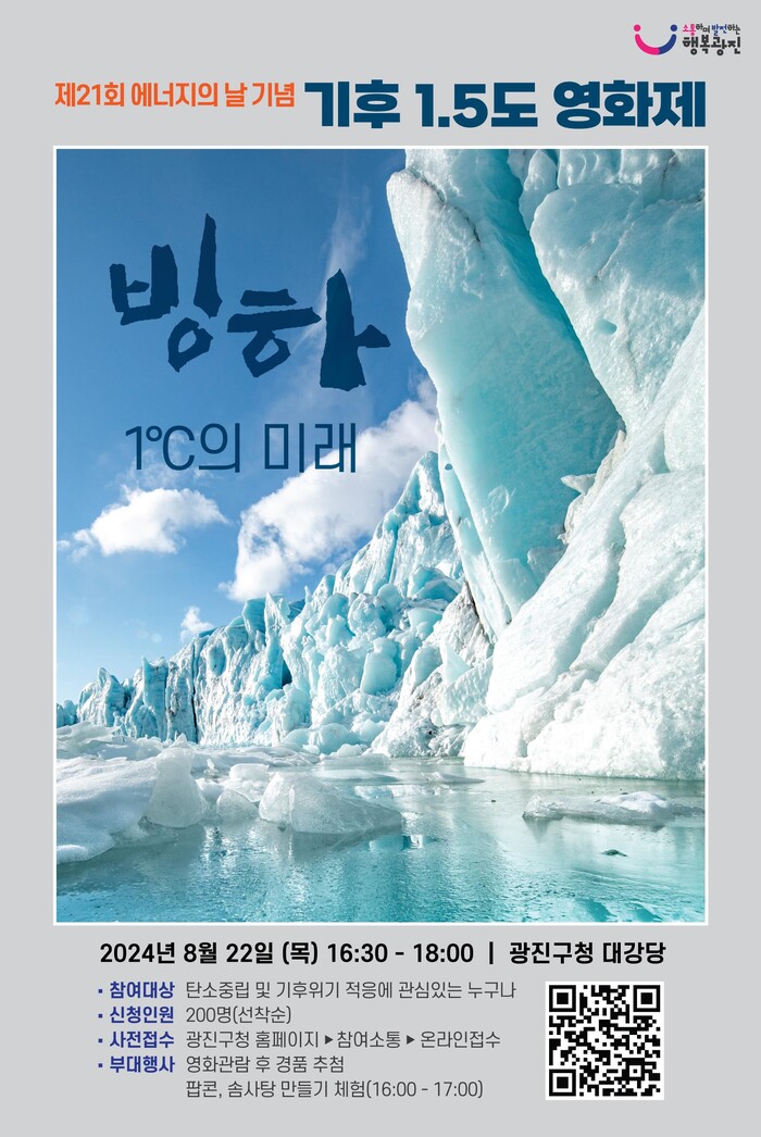 [시민일보 = 여영준 기자] 서울 광진구(구청장 김경호)가 오는 22일 구청 대강당에서 제21회 에너지의 날을 맞아 ‘기후 1.5도 영화제’를 개최한다.