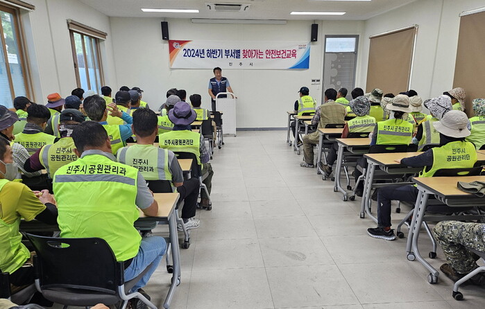 진주시는 5일 초전동에 소재한 공원녹지 안전교육장에서 현업근로자 90여 명을 대상으로 찾아가는 안전보건교육을 실시했다고 전했다.
