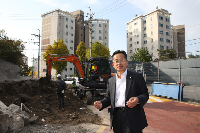 이 의원은 공사현장을 살피고, 공사 관계자에게 안전하고 신속한 준공을 당부하였다. 최근 이 의원은 매일 지역 구석구석을 도보로 순찰하며 세심하게 살피고 있다. 사직동(사직로1나길 12) 위험 담벽에 대한 보수공사도 추진하여 안전사고를 미연에 방지하였다.