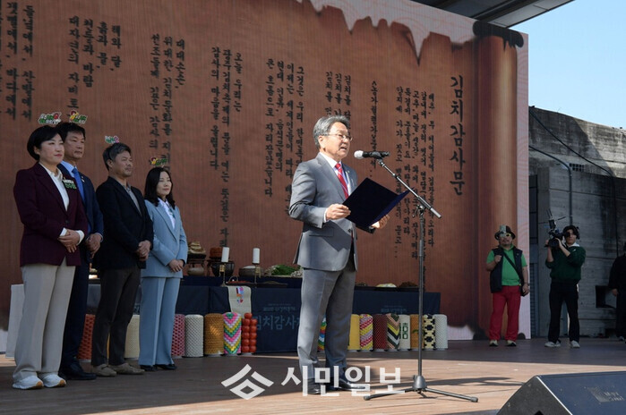 개막행사는 김치를 빚어낸 자연과 사람, 공동체의 노고에 감사하는 ‘김치감사제’로 시작됐다. 강기정 시장이 ‘김치감사문’을 낭독하며 김치문화를 이어온 농민과 시민들에게 감사의 뜻을 전했다.