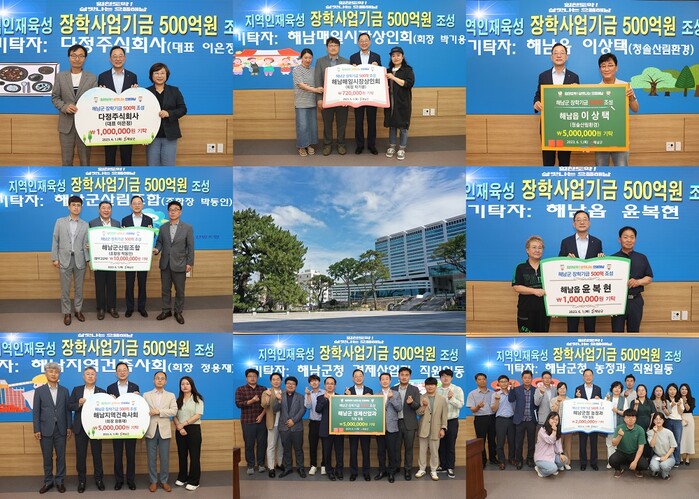 [해남=정찬남 기자] 전남 해남군의 미래 인재육성을 위한 장학사업기금 500억 원 조성사업에 기탁이 잇따르고 있다.