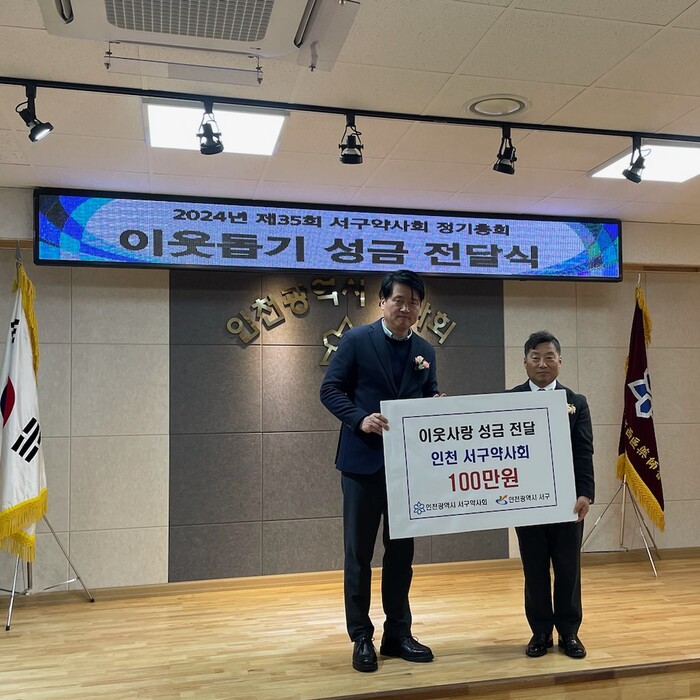 [인천=문찬식 기자] 인천 서구약사회에서는 최근 열린 제35회 서구약사회 정기총회에서 이웃사랑 성금 기탁 및 지역내 저소득층 학생들을 위한 장학금을 전달했다.