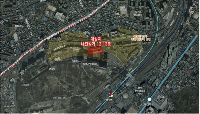 | ▲ 나진상가 12·13동 부지 특별계획구역 위치도 (사진=용산구청 제공) |