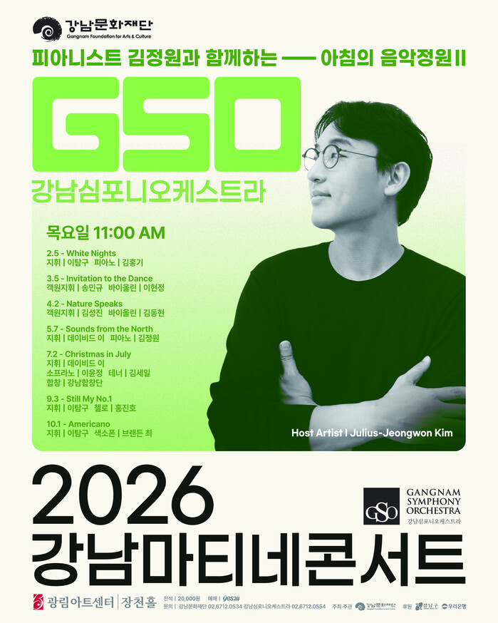 지휘자 이탐구(강남심포니 부지휘자)와 피아니스트 김홍기, 그리고 호스트 아티스트 김정원이 함께한다.