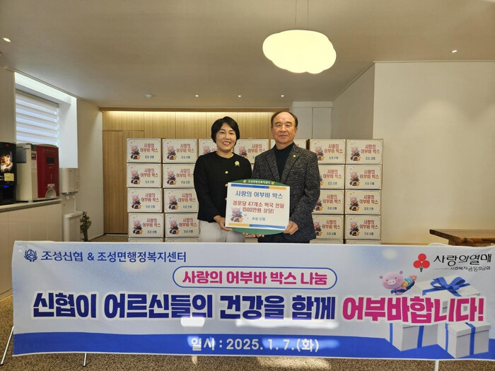 김성만 조성신협 이사장은 “지역 어르신들을 위해 정성껏 준비했다”며 “앞으로 다양한 나눔 활동을 지속적으로 펼쳐 지역사회와 동반 성장하겠다”고 전했다.