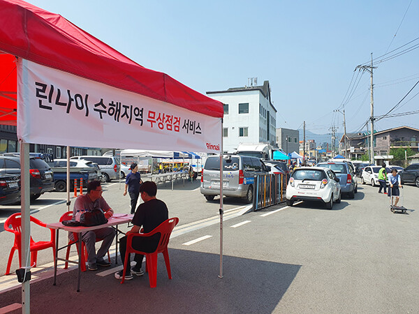 | ▲ 린나이가 옥룡동 노인회관 앞에 긴급 서비스캠프를 설치하고 주민들을 지원했다. |