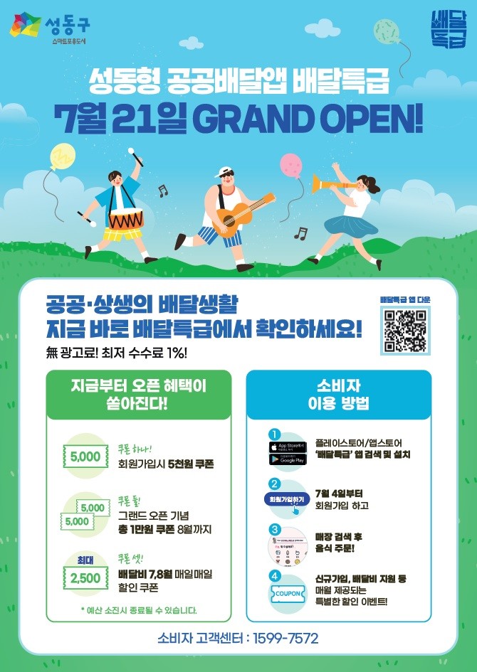 | ▲ 성동형 공공배달앱 '배달특급' 런칭 안내문. (사진제공=성동구청) |