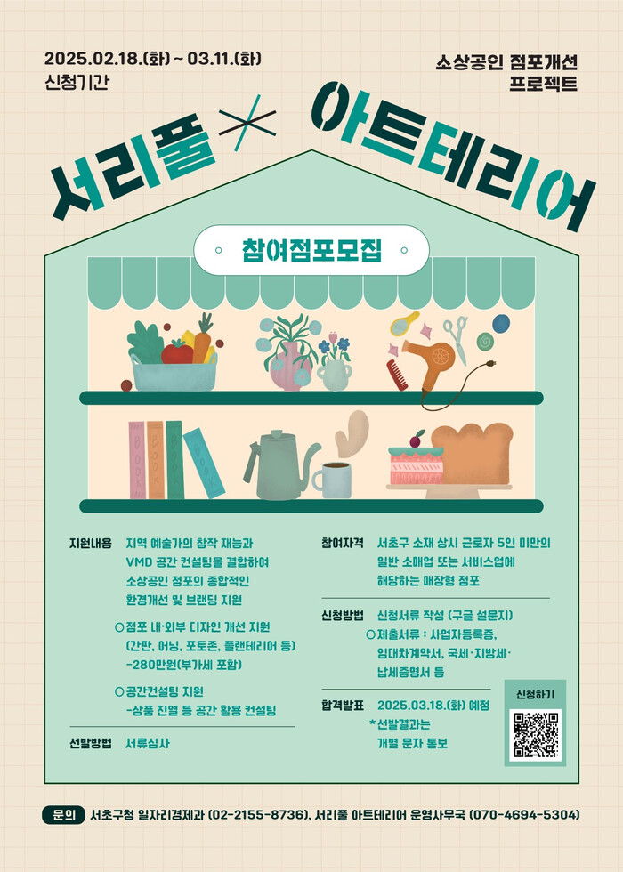 | ▲ 아트테리어 참여가게 모집 포스터. (사진=서초구청 제공) |
