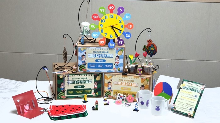 첫 번째, ‘2022 홈딜리버리 올클래스 – 썸머! 다(多)드림’은 유치원생‧초등학생을 대상으로 운영하는 서초 썸머스쿨의 대표 프로그램으로, 사전에 신청한 DIY용 교육키트를 집으로 배송받아 교육영상을 보며 체험할 수 있도록 기획했다. 교육키트는 ‘창의과학’, ‘문화역사’, ‘미술공예’의 3가지 분야로, 신청대상의 눈높이에 맞춰 구성되어 있다.