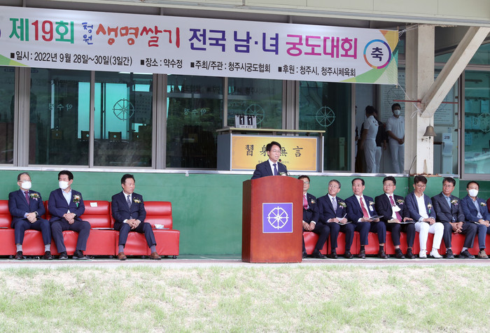 오세동 청주 부시장은 환영사를 통해 “대회 참가를 위해 전국 각지에서 청주를 방문해주신 선수단과 임원, 가족 여러분을 진심으로 환영한다”며, “이번 대회가 청원생명쌀을 전국에 널리 홍보하는 한편 승패를 떠나 모두가 즐기는 궁도인의 축제가 되기를 바란다”고 말했다.