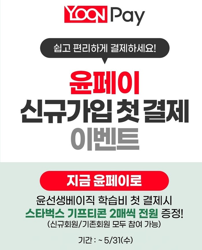 윤선생 관계자는 “결제 이벤트는 소비자에게는 소소하지만 알찬 혜택과 편의성을 제공하고, 기업 입장에서는 결제 이탈률을 감소시킬 수 있어 양 측 모두가 윈윈할 수 있다”며 “앞으로도 학습비 결제 이벤트를 활발히 진행할 계획“이라고 말했다.