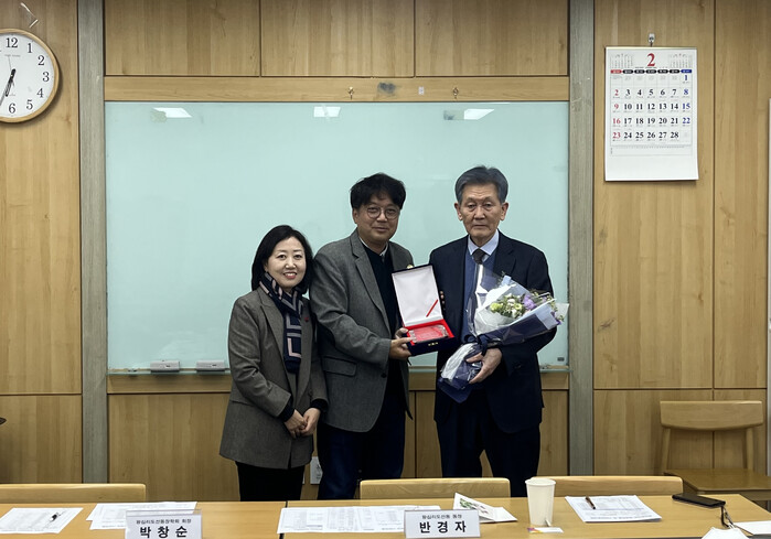 또한 같은 날 장학운영위원회 회의에서는 장학회 초기 설립시기부터 현재까지 장학사업에 헌신해 오신 김웅선 명예회장님께 감사패를 전달하는 시간을 가졌다.