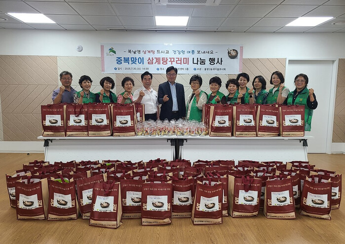 김순옥 새마을부녀회장은 “부모님 같은 어르신들을 위해 존경하는 마음을 담아 정성껏 삼계탕 꾸러미를 준비했다”며 “소박한 음식이지만 어르신들이 맛있게 드시고 올여름도 건강하고 무탈하게 보내길 바란다”고 말했다.
