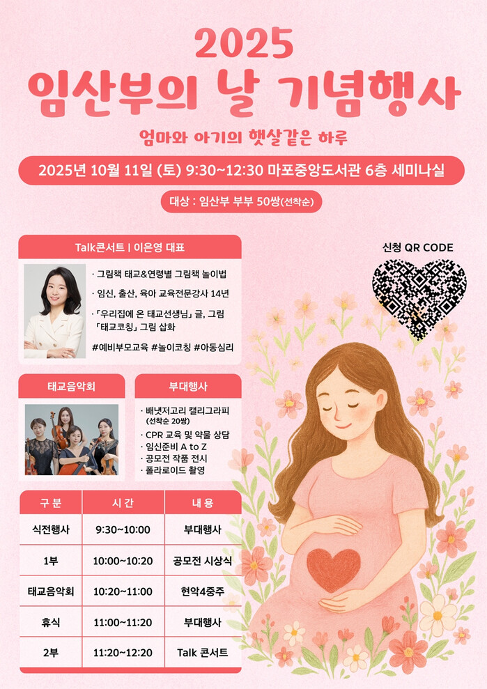 이번 행사는 현악 4중주의 선율을 담은 ‘태교 음악회’와 함께, 예비 부모를 위한 ‘감성태교 토크 콘서트’를 비롯해 풍성한 프로그램으로 진행된다.